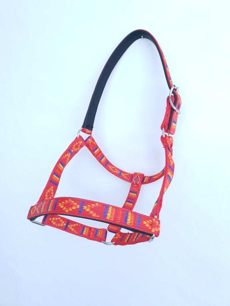 Hlevska oglavka je izdelana iz polipropilenske tkanine in sešita z močnim sukancem debeline 10/3. Kovinski deli so iz nerjavečega jekla.